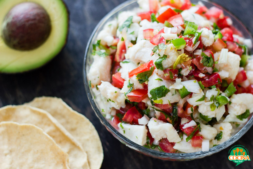 Transcurrido el tiempo del refrigeración, el pescado habrá pasado de un color transparente a un color blanco. Será el momento de agregar todos los ingredientes que se han cortado, ajustar la sazón con un poco más de sal y pimienta y revolver nuevamente.